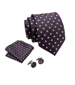 Med sin dybe lilla farve og diskrete lyserøde rektangler udstråler dette slips en blanding af kreativitet og professionalisme, ideelt til den moderne mand på arbejde eller til sociale begivenheder.
