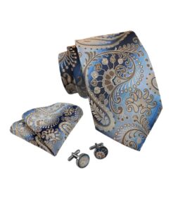 Slipsesættet består af slips, matchende manchetknapper og lommeklud