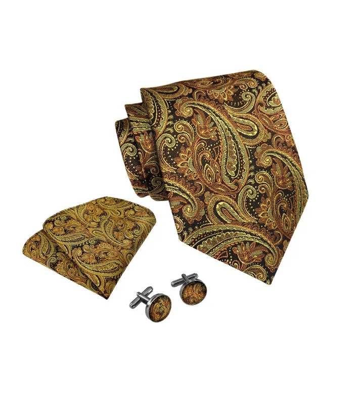 Dette Gyldne Paisley Megeteri Slips er indbegrebet af klassisk stil med et moderne twist. Med en rig guld og sort farvepalet og et tidløst paisleymønster er dette slips det perfekte valg for en mand, der værdsætter finesser og detaljer.