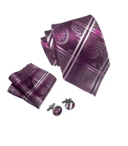Slipsesættet består af slips, matchende manchetknapper og lommeklud