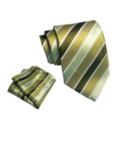 Med sine skarpe lys grønne og hvide striber, tilbyder dette slips en frisk og klar stil til ethvert forretnings- eller casual outfit.