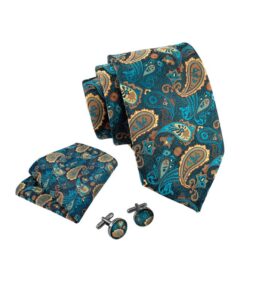 Dette slips med et iøjnefaldende turkis paisley mønster er et statement stykke, der kombinerer traditionel finesse med moderne flair.