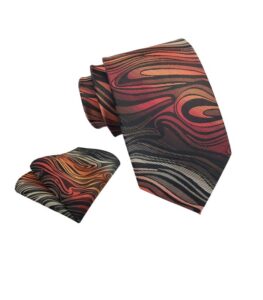 Skil dig ud fra mængden med dette slips, der præsenterer abstrakte bølger i en række røde nuancer, der tilfører en kunstnerisk kant.